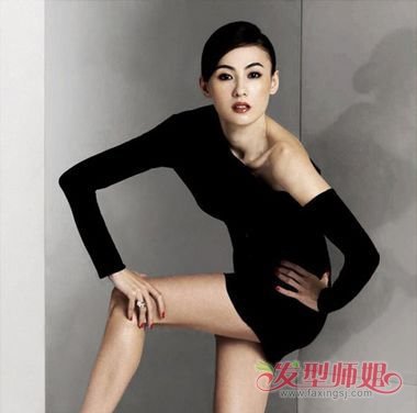 作为两个孩子母亲的张柏芝成功付出,还是那么美的她如何选择属于她的辣妈发型呢?这款斜刘海造型的黑色长直发向后梳理整洁,对发丝做气质造型的低盘发造型,搭配斜肩的黑色连衣裙妩媚动人。
