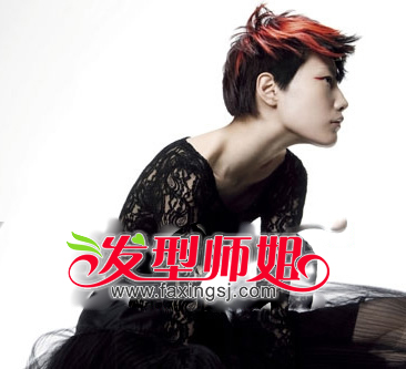 个性的短烫发发型向来是沙宣发型设计中的重头戏,这款2013最新沙宣短烫发也没有让我们失望。前伸的刘海微微卷翘,没有着力营造轮廓的整体感,实在是一种难能可贵的突破。刘海的橘色挑染像是燃烧的火焰,点燃了沙宣短烫发发型的潮流时尚。