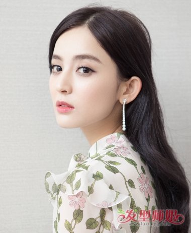 娜扎偏分后梳长发发型