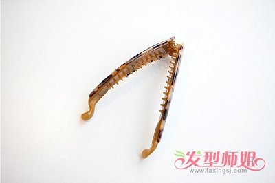第二步:准备一款简单的香蕉夹,下面的步骤中会用得到,没有任何发饰的香蕉夹即可,发夹会隐藏到发丝中的。