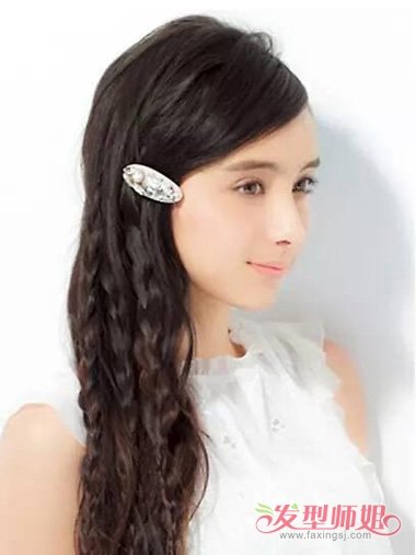 发夹显示出女生流行,编出的小辫子格外迷人,正侧面去欣赏是露出额头造型,剪出的多层次头发更加好看,靠上头发是做着自然效果,超有气场的女生长头发打造,白色衣服蛮与她的发型般配的打造。