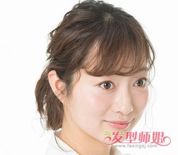 第五步:最后简单的打理下轻薄的斜刘海,女生小清新斜刘海马尾辫就扎成了,非常适合头发到下巴的女生哟。