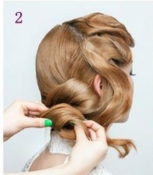 第二步:扭转后的发丝使用发夹做固定,同样将下层的发丝也按照同样的方法进行扭转,优雅的低发髻造型就出现在了我们面前。
