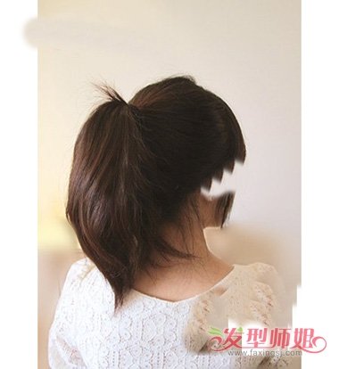 扎法2:在头发的一侧抽出了两丝头发,从前到后有着顺序梳编起,完成之后是直接缠绕在了马尾辫子上,在头发的下方是做着蓬松打造,细节处设计更加完美化。