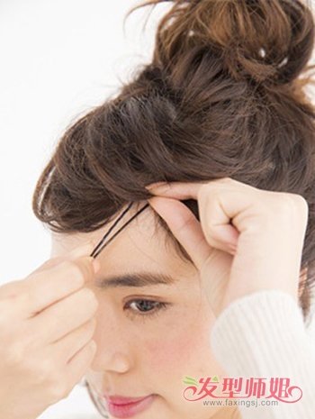 简单蓬松凌乱丸子头发型 凌乱蓬松丸子头扎法图解(3)