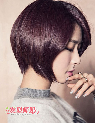三七分的设计清新美好而又不失优雅味道,时尚的染发元素还能让优雅的发型焕发出新的活力,在清爽的短发造型中融入BOBO头的元素,内扣的发尾还能完美修饰脸型哦。