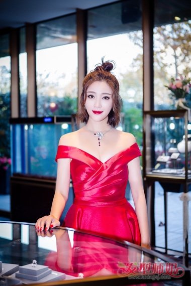 欣赏下甘婷婷的这款发型,具有立体感的效果存在,刘海的设计也是那么漂亮,半扎的丸子头发型增加了潮流时尚,温婉迷人的明星甘婷婷的短卷发造型设计。