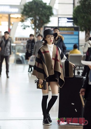 甘婷婷齐肩外翻卷发搭配洋帽 绝美短发现身机场(4)