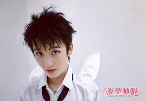 这位女生为了玩转个性时尚,不惜将一头黑色头发剪得很短很碎,并且做发根定位烫打理,弄成中性风黑色短碎发发型,不过修颜效果很多,看女生的脸型都不显得长了呢。