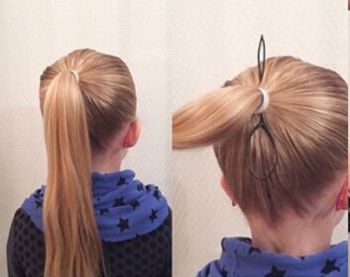 step1:柔顺的长直发在脑后扎为高马尾,然后将盘发器穿过其中。