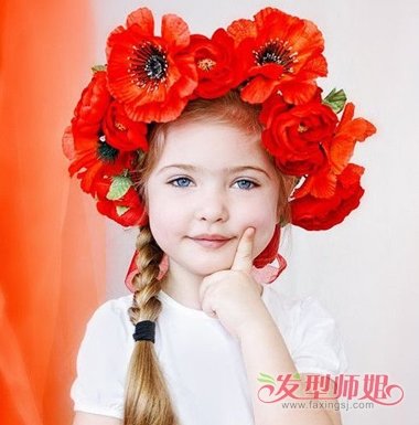 可爱呆萌的胖脸小女孩没有臃肿圆润,更多的是美萌哟,夏天的时候妈妈将小女孩的中长发梳理在一起,编织成精致漂亮的侧麻花辫,头上戴一个大大的红色花环,一位漂亮可爱的小花仙子就打造出来了。