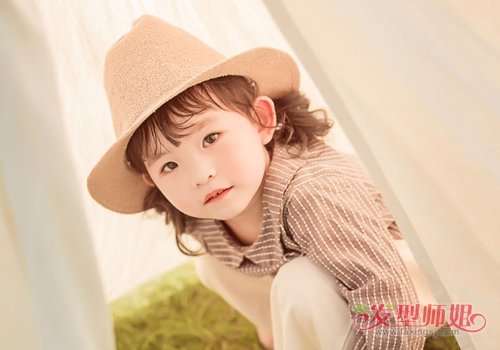 留着一头自然卷短发的小女孩萌萌哒,出门戴帽子的时候,妈妈可以将女孩的头发扎成最简单的双马尾辫,不需要怎么打理,女孩的头发自然卷曲起来,就像一朵盛开的花朵,在帽子下面卷曲散开,很漂亮好看哟。