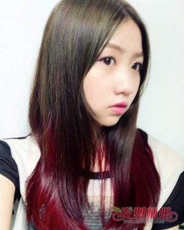 紫红色的直发发型 女生学生长发直发发型[染发]编辑:Jane2019-02-06