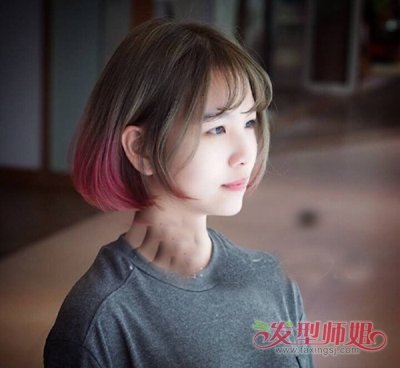 齐刘海短发挑染发型