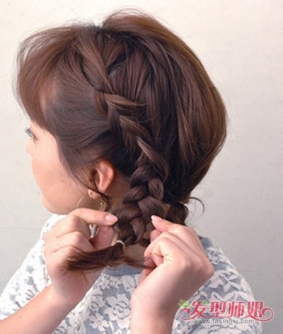 步骤五:将编织好的发辫用手指轻轻拉扯出蓬松空气感造型。