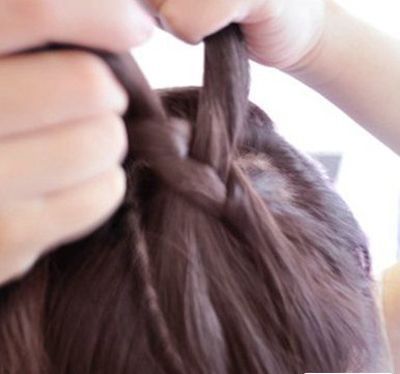 第二步:从发际线处在发量多的一侧分离出少量的发丝向后编发。