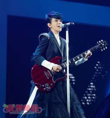 在舞台上的发型,怎么会和在生活中的发型一样呢,所以刘若英的这款偏分后梳短发发型,用的也不过是极其蓬松的刘海,搭配了将头发梳的靠后靠上的模样,延伸发型的帅气。