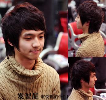 厚厚的头发,蓬在头顶,制造出厚实的质感,营造成稳厚实的男生形象。而有分线的刘海,则让发型整体有层次,更加的动感