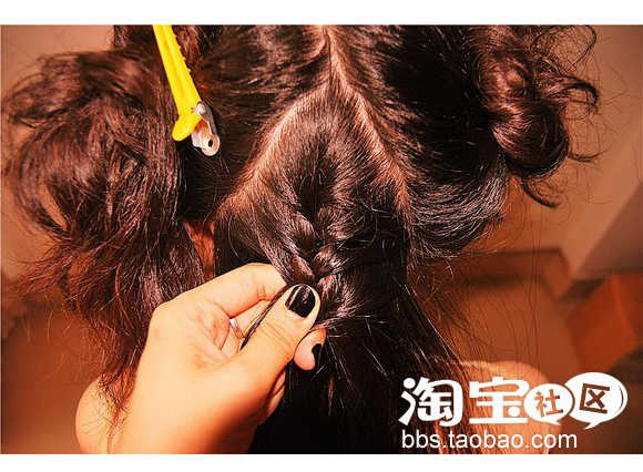 3. 逆时针方向将编好的辫子用夹子固定好