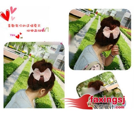 3;重点来了;这时头发是个圈圈的~把这个圈向两边拉,然后两边用夹子固定,或者直接用。