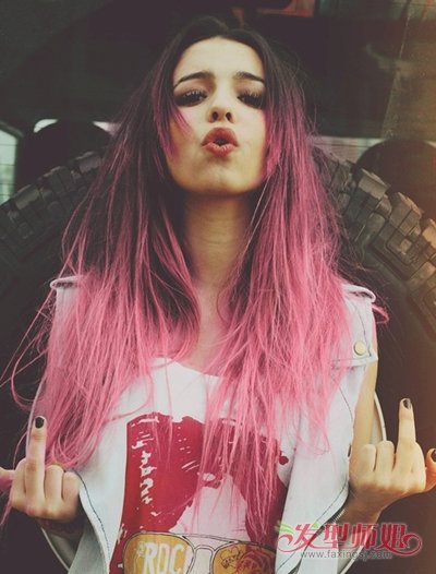 小方脸的女孩不仅好看还有很好的立体效果,这款中分造型的长直发垂落在两侧,碎发层次的修剪结合上双色染发展现非主流女孩的独特与不羁感,发尾采用紫红色的染发处理,搭配中分的短刘海酷炫十足。