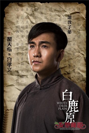电视剧《白鹿原》翟天临饰演白孝文发型,微卷的头发是做着柔顺效果,打造出了国民时期的帅气形象,斜斜的刘海更是添加了文学感,很符合他的背景造型设计。