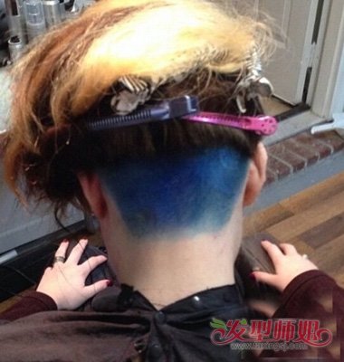 后脑勺染出的蓝色头发,完美示范出瓜子脸男生帅气,头顶上方染出的暗黄头发更加迷人,让两侧有着协调作用发型打造,顶端头发是精致制作,温馨度百分百发型。